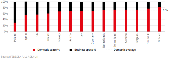 Business / Domestic split by area 2017